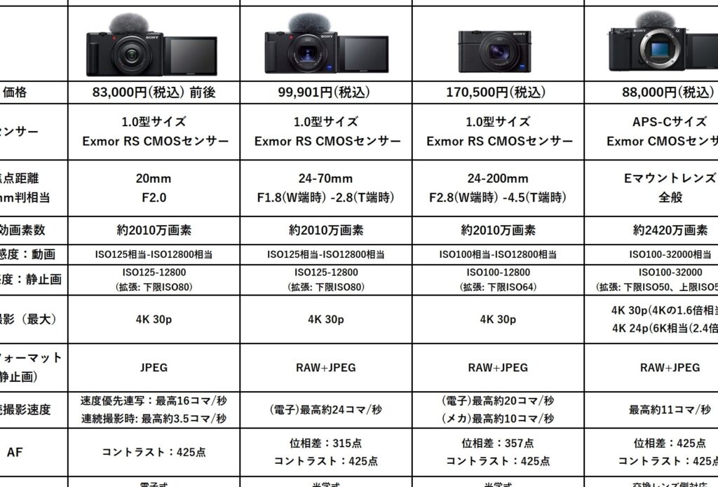 この表からわかるように、同じカテゴリでも各モデルによって強みが異なるため、自分のニーズに合ったものを見極めることが大切です。