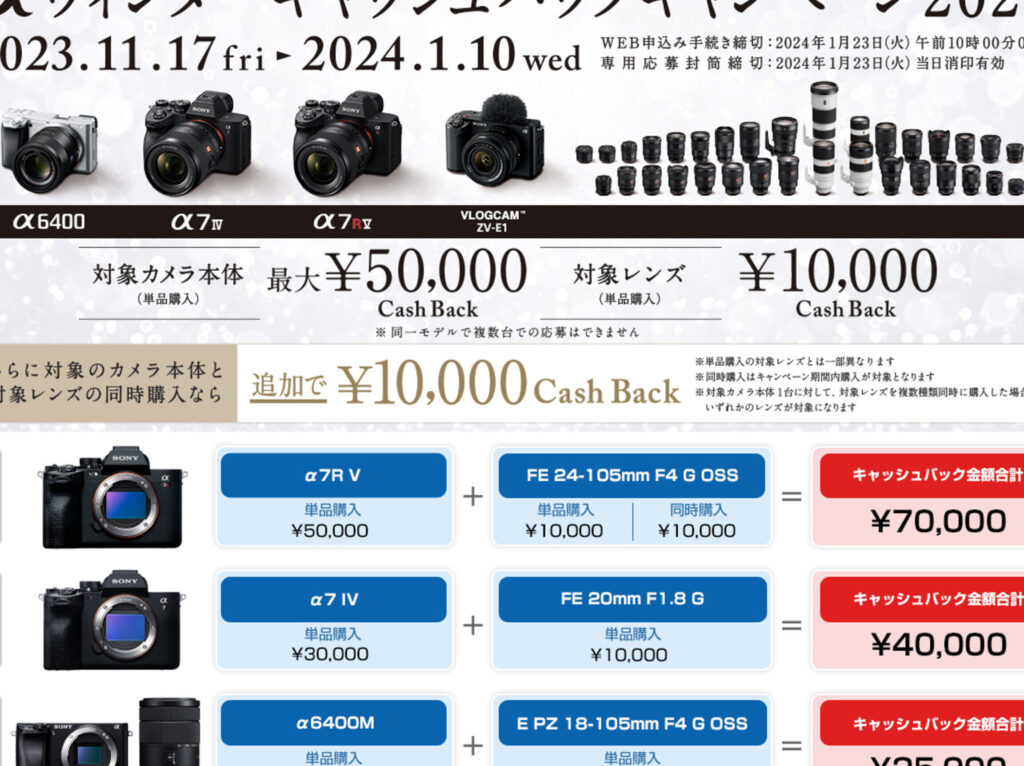 - 特別なイベント:画質やレンズ交換可能性